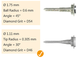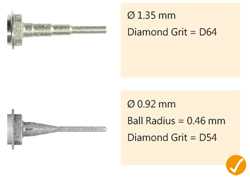 最小鑽針尖端僅 0.305 mm。讓您的修復體紋路更為細緻擬真
