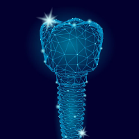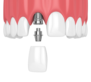 將精密電腦設計的鈦金屬人工牙根,經由手術植入 缺牙的骨頭 ( 代替原來牙根)人工牙根與牙骨密合後將假牙裝在人工牙根上,就像自己的牙齒一般好用、自然